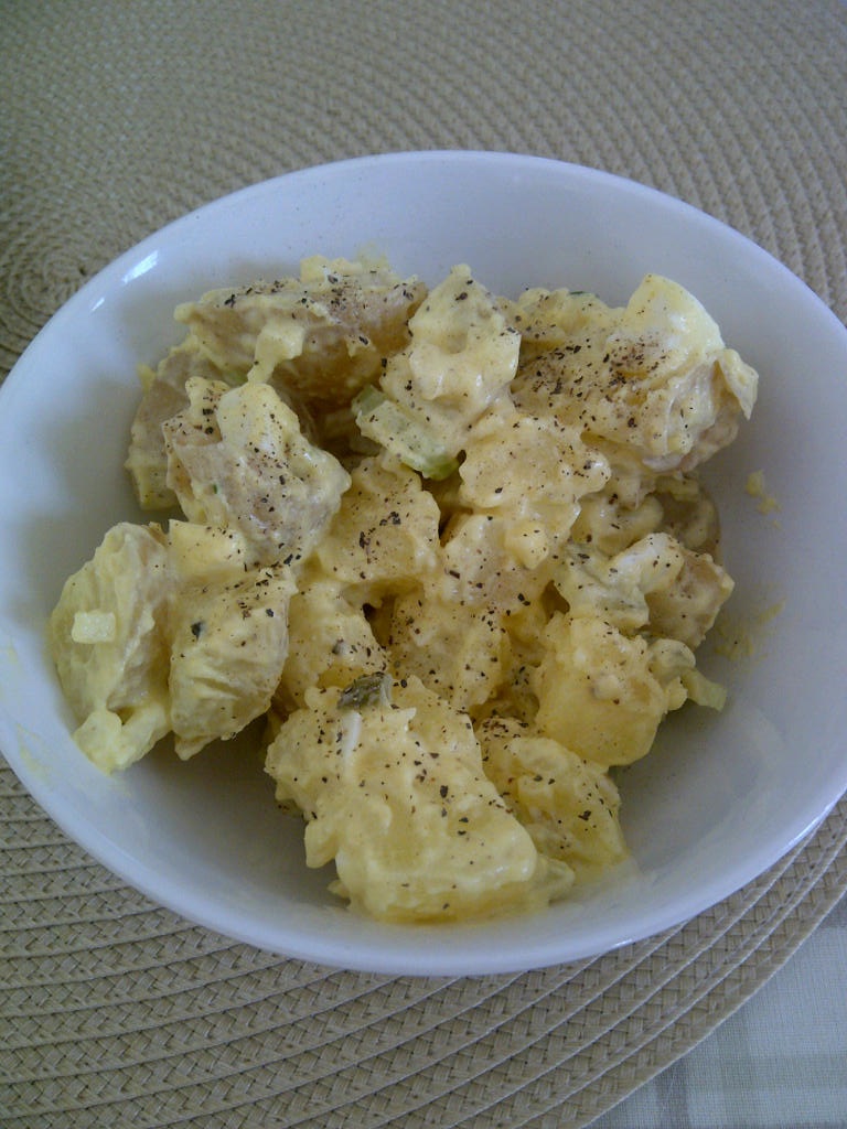 One of our football Sunday fave’s is potato salad! I had to pat myself on the back for this one, ahthanku. I kinda just threw stuff together for this so you may need to add a little more of the ingredients’ to your liking. So easy 🙂 Mangiamó!